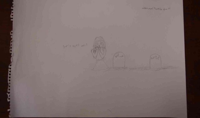 Uzman eğitimcilerce, savaşın izlerini hala zihinlerinde yaşayan çocuklardan gözlerini kapattıklarında ilk gördükleri kareyi resmetmeleri istendi.