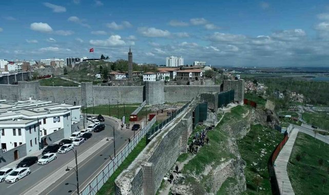 DİYARBAKIR (İHA) – Cumhurbaşkanı Recep Tayyip Erdoğan'ın geçen yıl Diyarbakır ziyaretinde yapılması talimatını verdiği surların Dicle Vadisine bakan ve Doğu Surlarını kapsayan 63 ile 73 nolu burçlar dahil olmak üzere 11 burcun restore çalışmaları sürüyor.