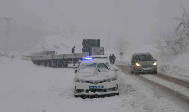 Zonguldak Ankara karayolunda yoğun kar yağışı etkisini sürdürüyor. Karayolları ekipler yol açma çalışmalarını sürdürürken polis, jandarma trafik ekipleri yollarda sürücülere yardımcı olmak için seferber oldu. Sapça mevkiinde tır yan dönerken kurtarmak için çalışma başlatıldı.