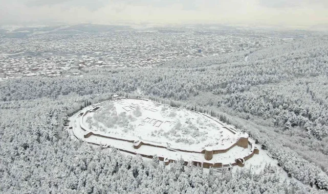 Tarihi Aydos Kalesi kar yağışıyla beyaza büründü