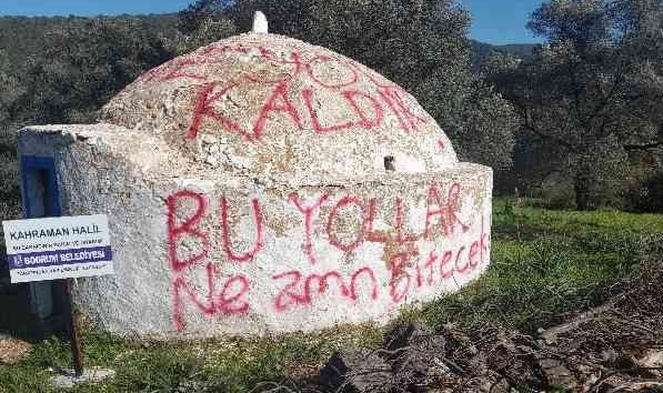 Muğla'nın Bodrum ilçesindeki tarihi su sarnıçlarının üzerine yazılan yazılar 'bu kadarına da pes' dedirtti. Yolların bozuk olmasını protesto edenler tarihi su sarnıçlarını protesto aracı olarak kullandı.