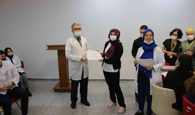 Daha sonra Teşekkür Belgelerinin takdimine geçildi. 2021 yılında Temas Emzirme ve Anne Sütü Gönüllüleri Derneği tarafından Anne Sütünü özendirmek için ülke genelinde düzenlenen video yarışmasında Türkiye üçüncülüğü kazanan ekibe dernek tarafından gönderilen plaket takdim edildi. 2021 yılında hasta ve hasta yakınlarının değişik iletişim kanallarından( Öneri kutuları, Sabim, Cimer) belirttikleri memnuniyetleri ilgili personellere Teşekkür Belgeleri iletildi. Bu kapsamda 34 personele belge verildi. Daha sonra Hastane çalışmalarına özverili, gayretli çalışmalarıyla katkıda bulunan 14 personele, ayrıca pandemi sürecinde gayretli çalışmalarından dolayı başta Pandemi Yoğun Bakım, Pandemi servisi, Acil olmak üzere tüm birimlere Teşekkür Belgeleri verildi.