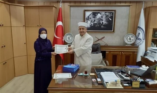 Esma'ya Çorlu İlçe Müftülüğünde düzenlenen İhtida merasiminde Çorlu İlçe Müftüsü Dr. Mevlüt Haliloğlu tarafından İhtida Belgesi, Kur'an-ı Kerim Meali ile İslam İlmihali hediye edildi.