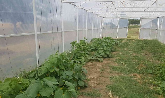 Tekirdağ'da Hayrabolu Ergün Korkmaz Mesleki ve Teknik Anadolu Lisesi Tarım Bölümü öğrencileri, okulun bahçesindeki serada organik yöntemlerle meyve ve sebze yetiştiriyor.