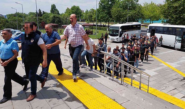 Operasyon sonucunda gözaltına alınan 37 kişi Tekirdağ İl Emniyet Müdürlüğüne getirildi. Sorgusu tamamlanan 37 kişi adliyeye sevk edildi.