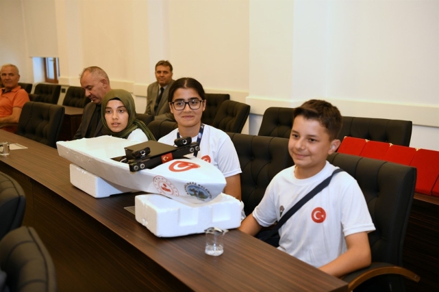 Valilik binası önünde hatıra fotoğrafı çekilmesinin ardından danışman öğretmenlere plaket, öğrencilere çeşitli hediyeler veren Vali Orhan Tavlı proje kapsamında geliştirilen araçları inceledi. Gençlerin ısrarı üzerine araçlara imza attı.