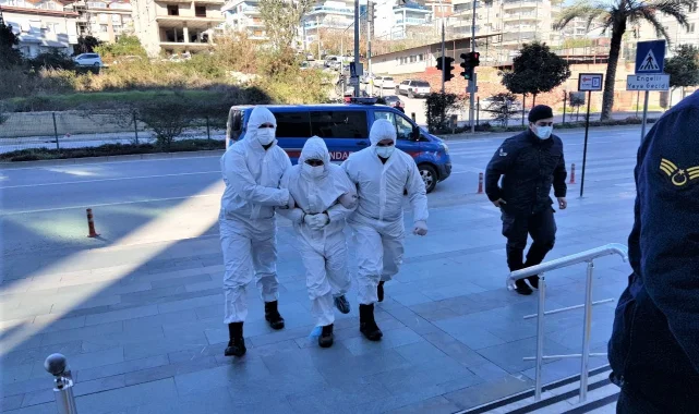 Kadının şikayetinin ardından araca taşlı saldırında bulunan Y.K.(28), jandarma ekipleri tarafından yakalandı. Yakalanan şahsın yapılan Covid-19 testinde durumu pozitif çıktı. Bunun üzerine hem şahıs hem de görevli jandarma personeli koruyucu elbise olan tulum giydi. Jandarma ekipleri, koruyucu elbiseler içerisinde şahsı adliyeye sevk etti.