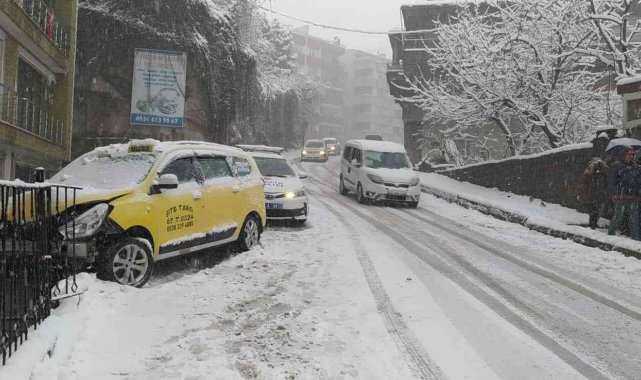 Zonguldak'ta kar yağışı nedeniyle sürücüsünün kontrolünden çıkan ticari taksi bir apartmanın girişine çarparak durabildi. Kazada bir kişi yaralandı.