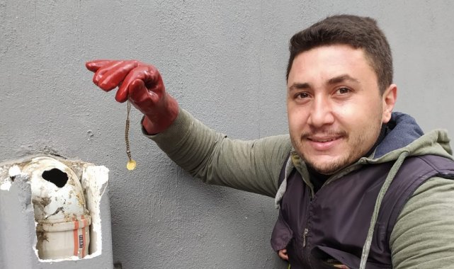Manisa'nın Alaşehir ilçesinde tıkalı bir su giderini açmak için çağrılan su tesisatçı, tıkalı boruda bulduğu çeyrek altınlı bilekliği sahibine teslim ederek örnek bir davranışa imza attı. Borudan çıkan çeyrek altınlı bilekliğin bir yıl önce düşürüldüğü öğrenildi.