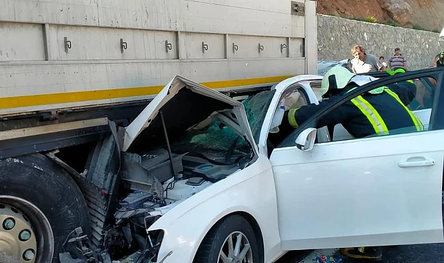 Tıra ok gibi saplanan otomobildeki 2 kişi yaralandı