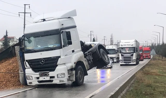 Tırın dorsesi devrildi, çevreyolu trafiğe kapatıldı