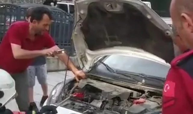 Trabzon'da bir otomobilin motor kısmına giren yılanı itfaiye çıkardı