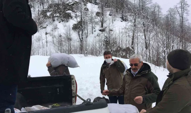 Trabzon'un yüksek kesimlerinde etkili olan soğuk hava ve kar yağışı nedeniyle yiyecek bulmakta zorlanan hayvanların imdadına Doğa Koruma ve Milli Parklar Trabzon Şube Müdürlüğü ekipleri yetişti.