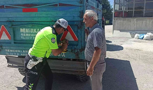 Kırşehir'de traktör şoförlerine trafik kuralları hakkında bilgilendirme yapılarak, römorklara reflektör takıldı.