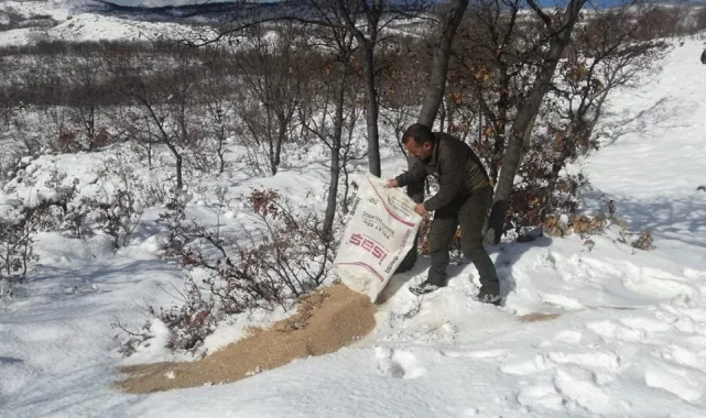 Tunceli'de etkili olan kar ile birlikte yiyecek bulmakta zorlanan yaban hayvanları için doğaya yem bırakıldı.