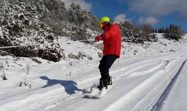Turizmin gözdesi Kemer'de, bu kez snowboard keyfi
