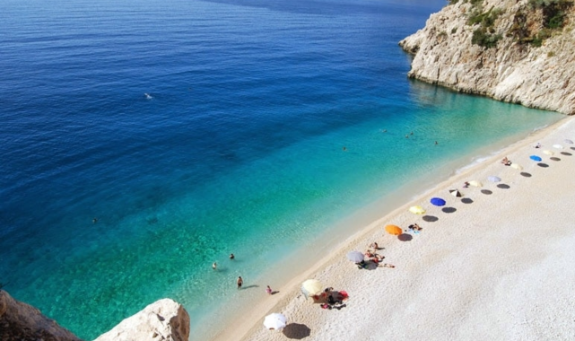 Karayolundan 187 basamak inilerek ulaşılan bu plaj, kanyondan akmakta olan suyla deniz suyunun birleştiği bir noktadadır. Gelen su deniz suyunun soğumasına sebep olur. Ayrıca deniz aniden derinleşir. Sahildeki kum ve taşlar diğer plajlara göre daha beyazdır.