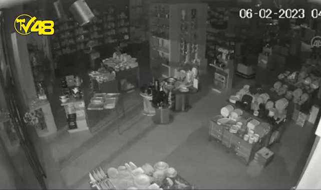 İş yerinin güvenlik kamerasının deprem anında kaydettiği görüntülerde ise rafların sallanması, bazı ürünlerin yere düşmesi, tozların uçuşması, yakınlarda yıkılan bir binadan kalkan toz ve parlayan ışıklar dikkati çekti.