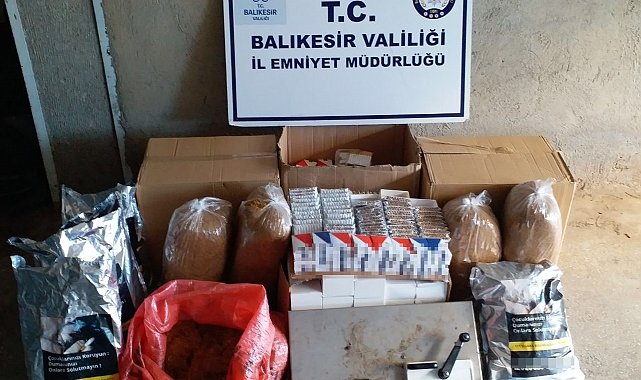 Balıkesir'in Edremit ilçesinde Edremit KOM Grup Amirliği tarafından yapılan çalışmada çok miktarda kaçak yollar ile imal edilmiş sigara, kıyılmış tütün ve bandrolsüz makaron ele geçirildi.