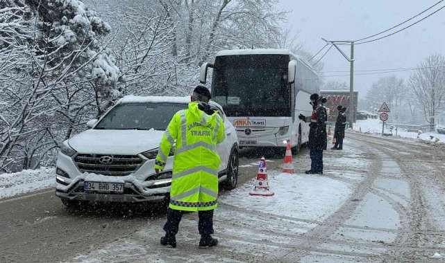 Kış turizminin önemli merkezlerinden Uludağ'da kar kalınlığı 105 santimetreye ulaşırken, jandarma ekipleri 8.kilometreden itibaren araçların zincirsiz çıkışına izin vermiyor. Uludağ'ın eteklerindeki Yiğitali Köyü'nden 82 kişi de araçlara zincir takmak için seferber oldu.