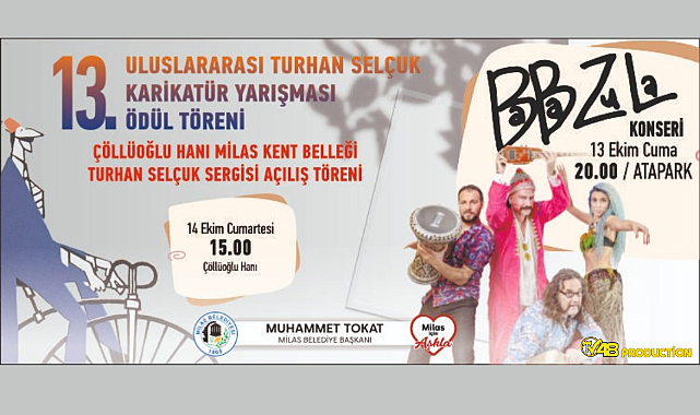 Program kapsamında 14 Ekim Cumartesi günü, Çöllüoğlu Hanı’nda, saat 15.00’de Uluslararası Turhan Selçuk Karikatür Yarışması’nda dereceye giren isimlere ödülleri takdim edilecek ve ardından Çöllüoğlu Hanı Milas Kent Belleği Turhan Selçuk Sergi Salonu’nun açılışı gerçekleştirilecek.