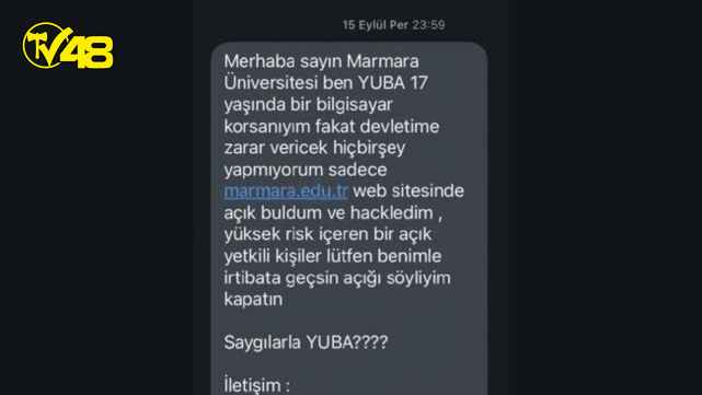 Üniversitenin veri sistemini hack'leyen 'YUBA'nın SMS ile yetkilileri uyardığı ortaya çıktı. 'YUBA' mesajında yetkililere şöyle seslendi: "Merhaba sayın Marmara Üniversitesi. Ben YUBA, 17 yaşında bilgisayar korsanıyım. Fakat devletime zarar verecek hiçbir şey yapmıyorum. Sadece web sitesinde açık buldum ve hack'ledim. Yüksek risk içeren bir açık. Yetkili kişi lütfen benimle irtibata geçsin. Açığı söyleyeyim, kapatın."
