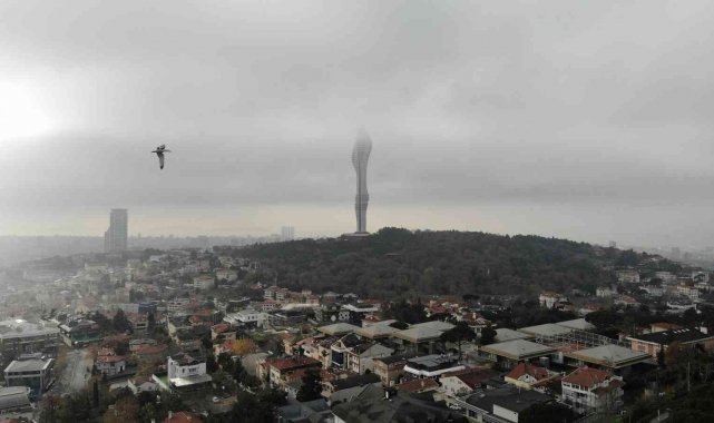 İstanbul'da sabah saatlerinde sis etkili oldu. İstanbul'un siluetlerinden Çamlıca Kulesi'nin üst noktaları sise büründü. Oluşan manzara havadan görüntülendi.