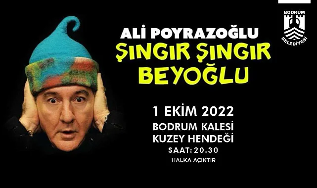 Bodrum Belediyesi Kültür ve Sosyal İşleri Müdürlüğü’nün organizasyonu ile halka açık olarak gerçekleştirilecek olan Ali Poyrazoğlu’nun tek kişilik doğaçlama oyunu Şıngır Şıngır Beyoğlu, 1 Ekim günü 20.30’da Bodrum Kalesi Kuzey Hendeğinde tiyatroseverler ile buluşacak.