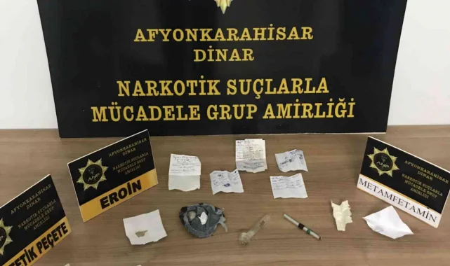 Olay, Dinar ilçe merkezinde meydana geldi. Edinilen bilgilere göre, Dinar İlçe Emniyet Müdürlüğü'ne bağlı Narkotik Suçlarla Mücadele Grup Amirliği ekipleri tarafından yapıldı. Şüphe üzerine bir şahsı takibe alan ekipler ardından şüpheliyi durdurarak üst araması yaptı. Aramada E.S., isimli şahsın üzerinde 6.86 gram eroin, 1.7 gram metamfetamin, sentetik peçeteye emzirilmiş 163 içimlik uyuşturucu ile üzerinde 5 kişinin isminin ve para miktarının belirtildiği çizelge ile ele geçirildi. Uyuşturucu madde ticareti yapma suçundan gözaltına alınan şahsın işlemlerinin ardından adliyeye sevk edileceği kaydedildi.