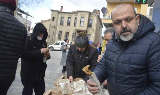 Hayırlı Hizmetler Vakfı, unutulmaya yüz tutan bu geleneği tekrar hatırlatmak için gözleme dağıtımını Tavşanlı Ulu Cami yanında Cuma namazı çıkışında gerçekleştirdi.