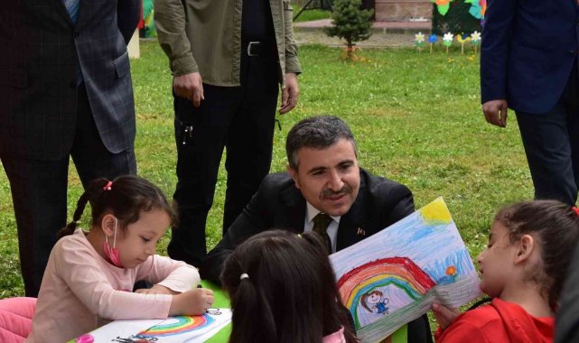 Etkinlik alanında çocuklarla bir araya gelen Vali Atay ise onlarla birlikte resim çizdi. Keyifli zaman geçiren miniklere çeşitli hediyeler de takdim edildi.