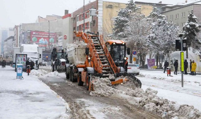 Van Büyükşehir Belediyesi karla mücadele ekipleri 24 saat içerisinde 600 kamyon ile toplam 9 bin ton karı şehir dışına taşıdı.