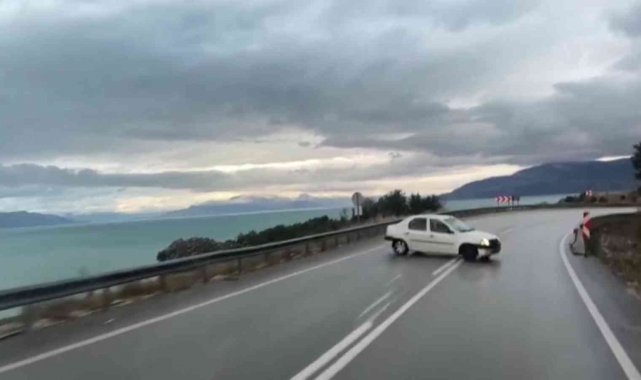 Isparta Eğirdir karayolunda viraja hızlı giren otomobil sürücüsü direksiyon hakimiyetini kaybederek karşı yoldan gelen kamyonete çarpıktan sonra ters dönerek durabildi. O anlar ise cep telefonu kamerasına anbean yansıdı