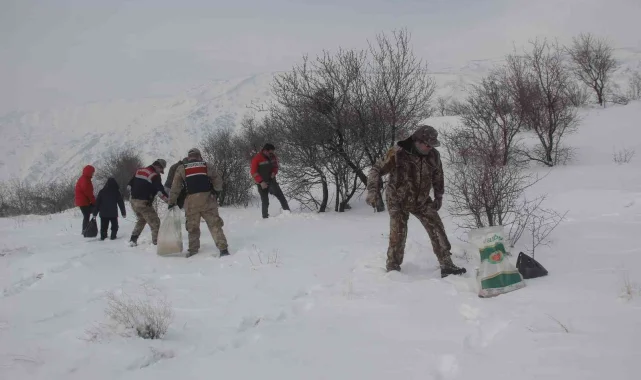 Erzincan'da çetin kış şartları nedeniyle yiyecek bulmakta zorlanan yaban hayvanları için karla kaplı doğaya yem bırakıldı.
