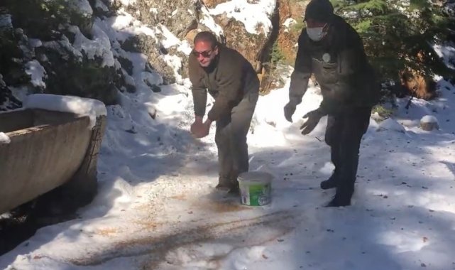 Yaban hayvanlarının yaşam alanlarına yem bırakıldı
