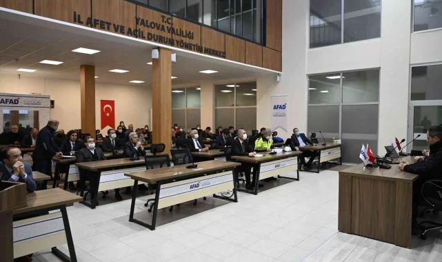 Yalova Valisi Muammer Erol'un başkanlığında 112 Acil Çağrı Merkezi Müdürlüğünde kurum ve kuruluş temsilcilerinin katılımıyla toplantı gerçekleşti. Toplantıda beklenen olumsuz hava koşullarına yönelik bir dizi tedbir kararı alındı. Alınan kararlar şu şekilde sıralandı;