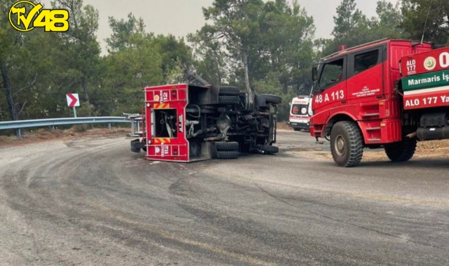 Datça'da meydana gelen yangında destek ekiplerden bir arazöz devrildi. Ölü ya da yaralının olmadığı kazada maddi hasar meydana geldi.