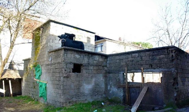 Kocaeli'de daha önce de birkaç kez bulunduğu ahırın üst katına çıkan "Kömür" isimli tosun yine durmadı. Bir daha çıkmaması için konulan engelleri boynuzuyla aşan tosun, yine çıktığı üst katta mahsur kaldı. İtfaiye ekiplerine de zorluk çıkaran yaramaz tosun, tarakla tüyleri taranınca sakinleşti.