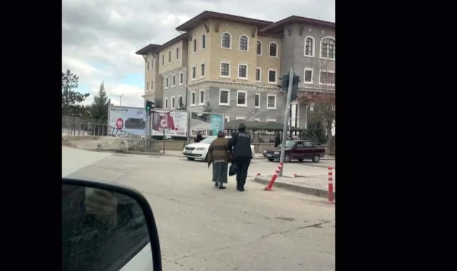 Yozgat'ın Yerköy ilçesinde yolun karşısına geçmeye çalışan yaşlı kadına polis yardımcı oldu.
