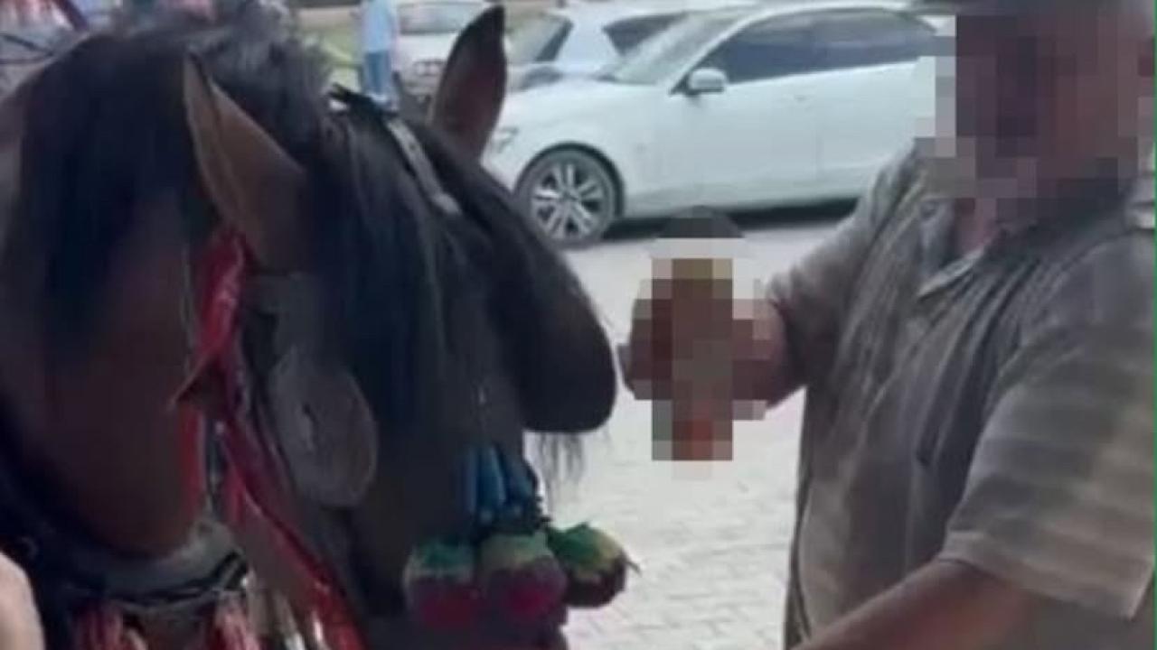 Tören için kiralanan faytonun atı, tur öncesinde sahibinin yemek tabağına koyduğu alkollü içeceği içti. O anlar davetliler tarafından cep telefonu kamerasıyla görüntülendi.