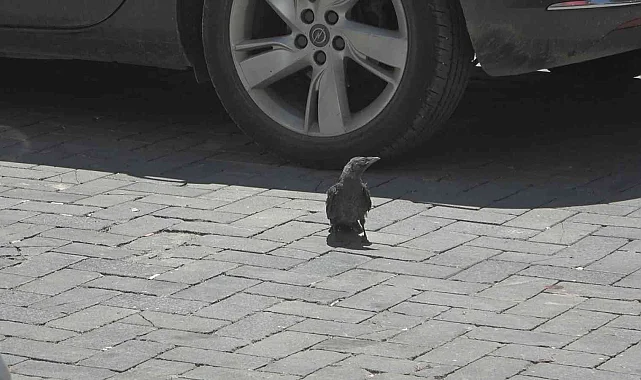 Yavru kargayı kurtarmak için esnaf seferber oldu