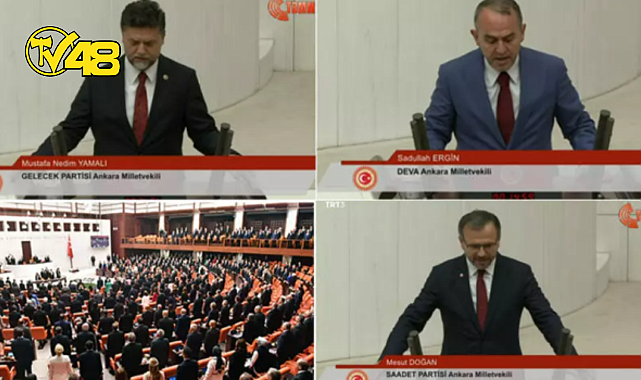 Yemin töreni esnasında TBMM'de ilginç görüntüler de kaydedildi. CHP listelerinden seçilerek parlamentoya giren İYİ Parti, DEVA Partisi, Gelecek Partisi, Saadet Partisi ve Demokrat Parti milletvekilleri yemin töreni öncesi CHP grubundan ayrıldı. Meclis'teki törende yemin için kürsüye çıkan milletvekillerinin tanıtım yazılarında kendi partilerinin isminin yazdığı görüldü.