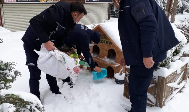 Özellikle soğuk havaların etkisini gösterdiği kış günlerinde sokaktaki kedi ve köpekler için ilçenin çeşitli noktalarında bulunan besleme noktalarına mama bırakan ekipler soğuk hava ve kar yağışından dolayı yiyecek bulmakta zorlanan kuşlar içinde parklardaki çeşitli noktalara buğday bırakıyor.