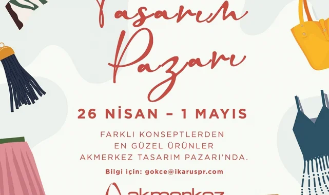 Akmerkez, etkinlik alanına kurulacak stantlarda özel markaları alışveriş severler ile buluşturmaya hazırlanıyor. 26 Nisan günü başlayacak Tasarım Pazarı'nda sevilen butiklerin ve yerel üreticilerin özel tasarım ürünleri ziyaretçilerin beğenisine sunulacak. Takıdan çantaya, aksesuardan giyime birçok kategorideki ürünün yer alacağı Tasarım Pazarı'nda, beğenilen tasarım takılarıyla Hafkha; sezonun trend gümüş takılarıyla Burcu Bor; özel çocuk kıyafetleriyle 2friends; tasarım şalvar ve tulumlarıyla Dare2Wear; basic ürünleriyle Labambola; doğal taş ve konsept takılarıyla Mie Official; sezonun sevilen takılarıyla Jude Jewelery; tasarım seramikleriyle Luxandbasic; çantalarıyla İz Bag; takılarıyla Se Design; doğal taş ve tasarım takılarıyla By Hande Dayal; tasarım kimonoları ve özel ürünleriyle Jana Design yer alacak.