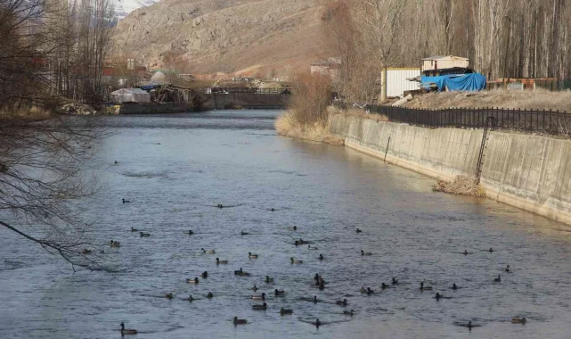 Yeşilbaşlı gövel ördekler Çoruh Nehrini renklendiriyor