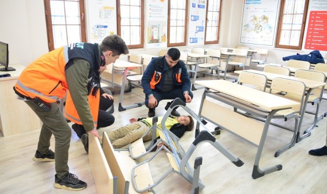 Deprem sonrasında arama-kurtarma, tahliye ve yangın söndürme ekipleri, binanın boşaltılması, yaralıya ilk müdahalenin yapılması, yaralının sağlık ekiplerine teslimi başta olmak üzere acil toplanma alanlarında sayım yapılması ve güvenliğin sağlanmasına yönelik uygulamalar tatbikat sırasında öğrencilere bire bir yansıtıldı.