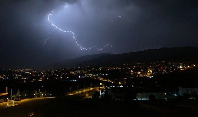 Karabük ve Bartın'da etkili olan rüzgarın ardından gök gürültülü şimşekler görsel şölen sunarken yıldırım düşme anları cep telefonu ile kaydedildi.
