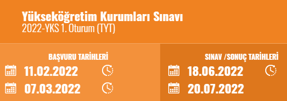 Temel Yeterlilik Testi (TYT), Alan Yeterlilik Testi (AYT) ve Yabancı Dil Testi (YDT) olmak üzere 3 oturumda gerçekleşecek olan Üniversite sınavı bu yıl 18.06.2022 tarihinde ilk oturumun uygulanacağı açıklandı.
