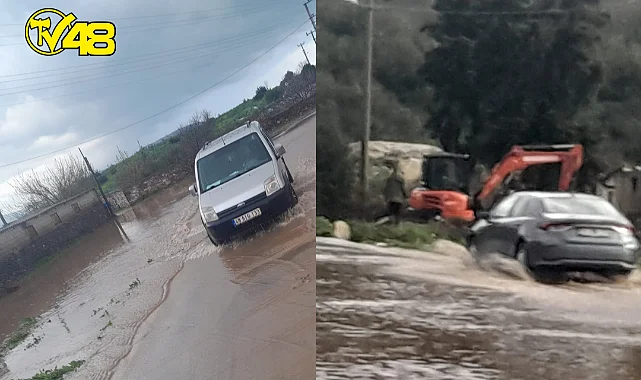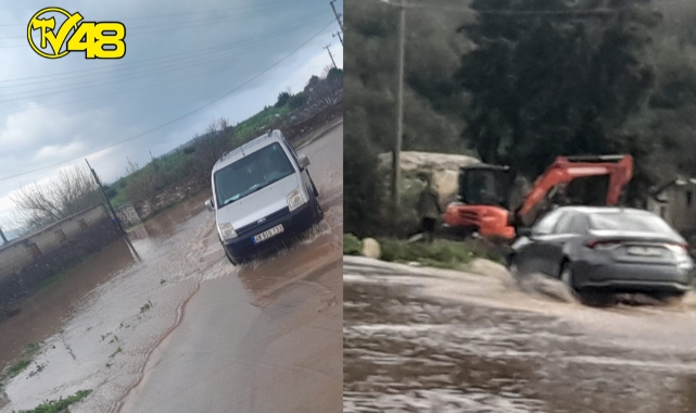 Milas Boğaziçi Mahallesinde yoğun yağıştan dolayı tıkanan dere taştı, sürücüler zor anlar yaşadı.