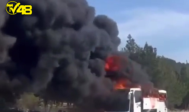 Fethiye Seydikemer İlçesinde yolcu otobüsü alev alev yandı.